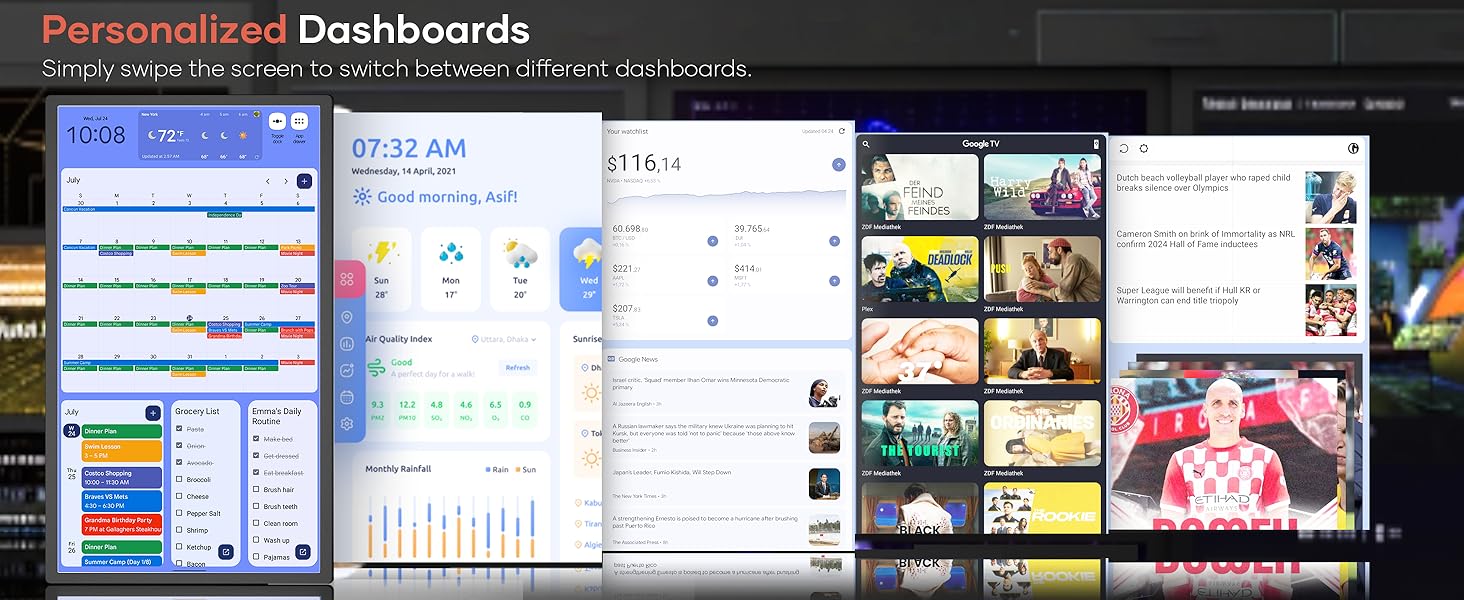 Mounting on the wall in your kitchen, you can enjoy hands-free recipe video with Google voice and YouTube. Enjoy giant portrait screen TikTok show in the break of cooking. Binge-watching Netflix episodes from living room TV to Kitchen’s Cozyla Calendar +. Play your favorite music in Spotify as background music of your house.